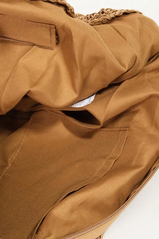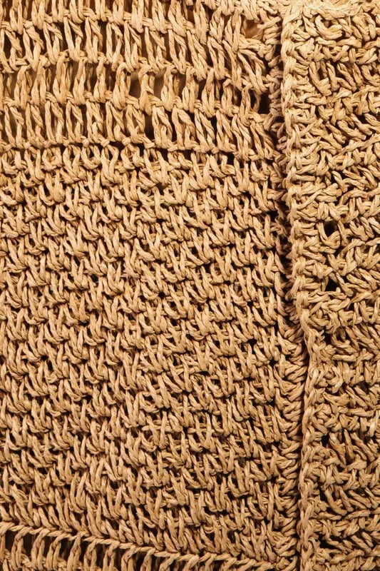 This straw knit tote bag is a fashionable and versatile accessory that is perfect for a relaxed and casual look. The straw knit design adds a touch of texture and beachy vibes to the bag. Elevate your style with this chic and practical tote bag that is ideal for carrying your essentials with ease and style.